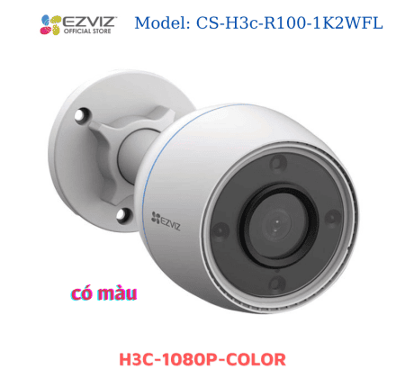 Camera Wifi Ezviz CS H3C Color 2.0MP chính hãng, cảm biến Panasonic, hình ảnh có màu ban đêm, ống kính 2.8mm góc rộng 112°, hồng ngoại thông minh 20m, đèn flash cảnh báo, chống nước IP67
