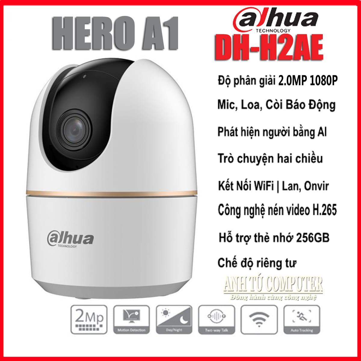 Camera WiFi Dahua Hero A1 DH-H2AE, quay quét 355°, Full HD 2.0MP, đàm thoại 2 chiều, phát hiện chuyển động, còi hú cảnh báo, hỗ trợ thẻ nhớ 256GB, giám sát an ninh trong nhà